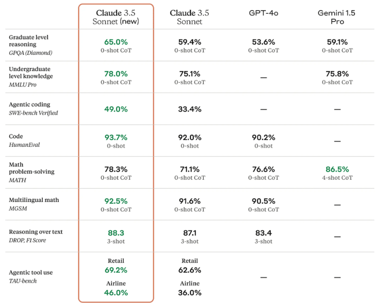 Comparación de Claude 3.5 Sonnet con Otros Modelos de IA en el Mercado